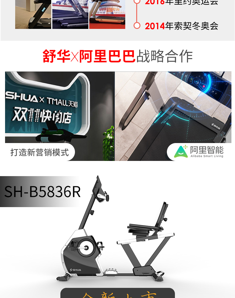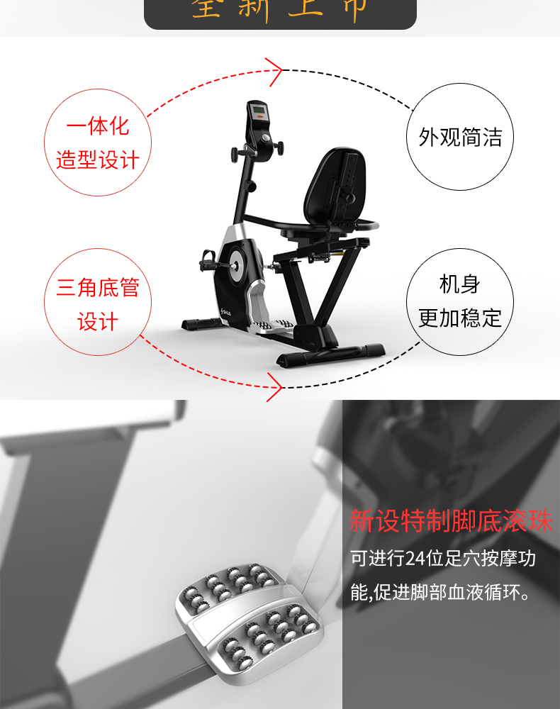 舒華健身車中老年臥式康復(fù)靜音家用腳踏運動減肥自行車B5836R